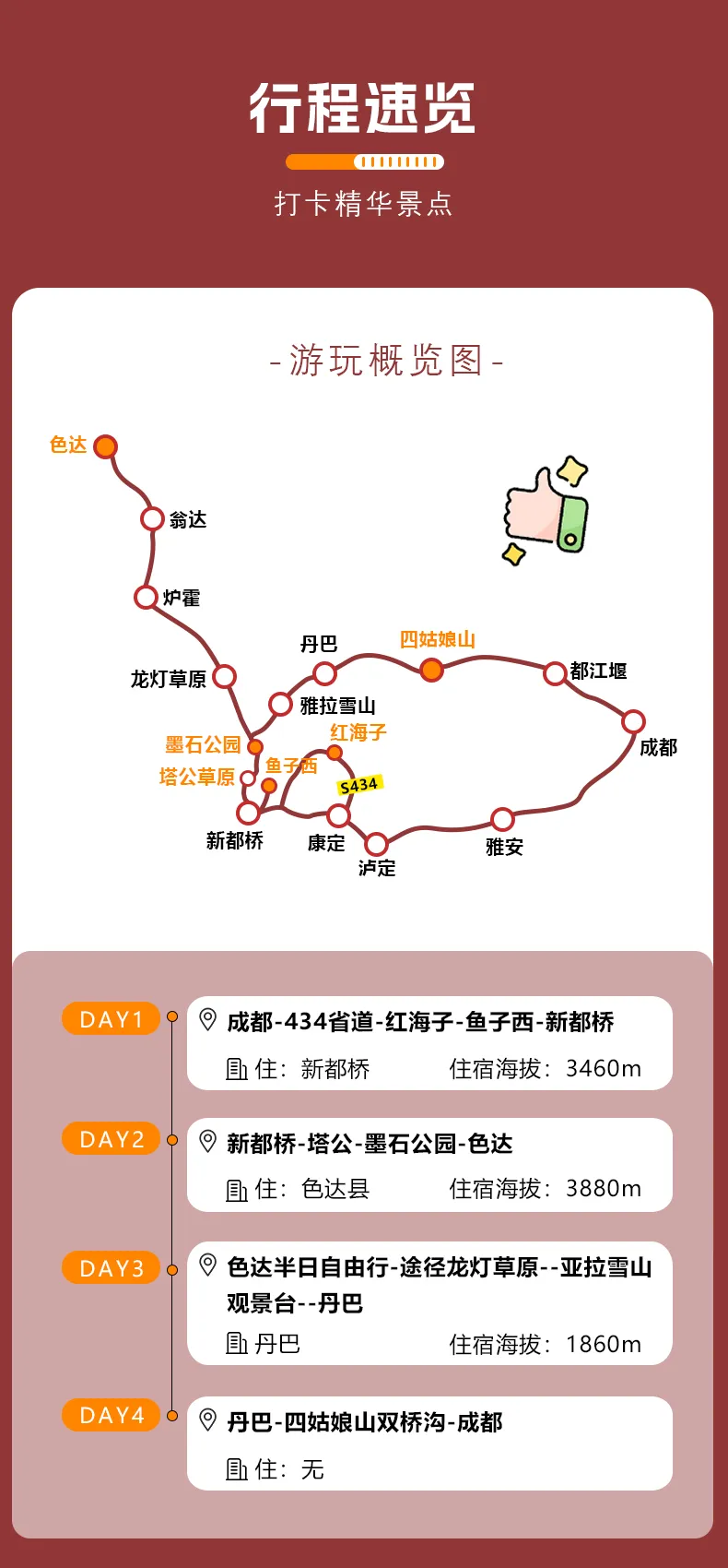 成都---網(wǎng)紅434省道---紅海子---魚(yú)子西--新都橋(約350KM 車程約6.5H)