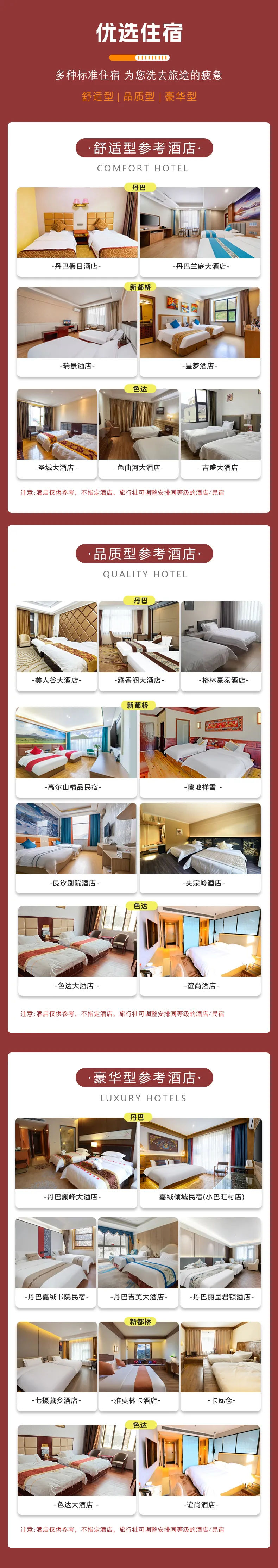 3、住宿:3晚標(biāo)準(zhǔn)間(具體以選擇的套餐為準(zhǔn))(訂單無(wú)特別說(shuō)明默認(rèn)標(biāo)間,沿途大床房較少,以預(yù)定時(shí)間優(yōu)先安排);