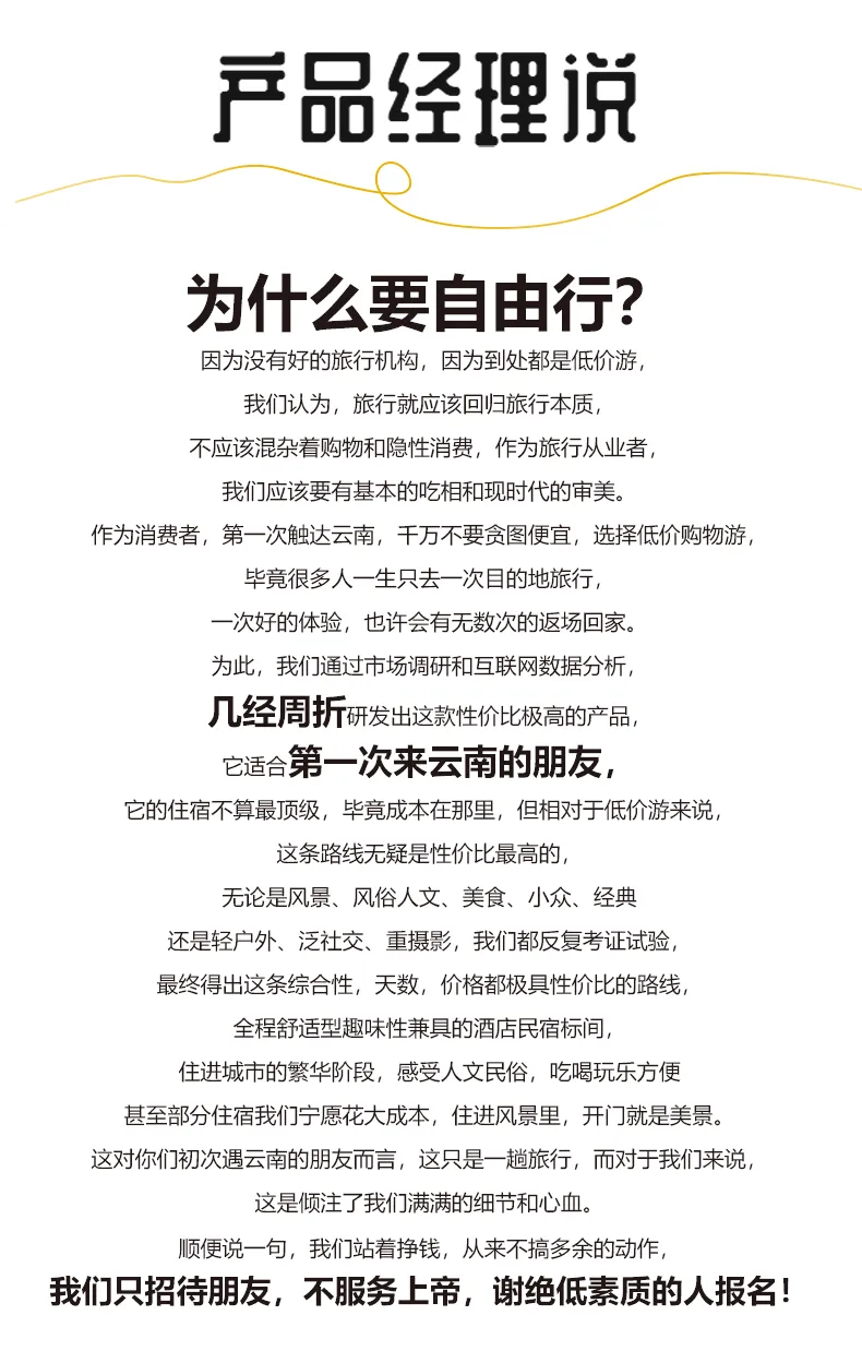 1、交通:不包含各地到達(dá)麗江集散的往返大交通費(fèi)用(如:機(jī)票和高鐵火車票等,提前預(yù)定通常折扣都會(huì)很低);