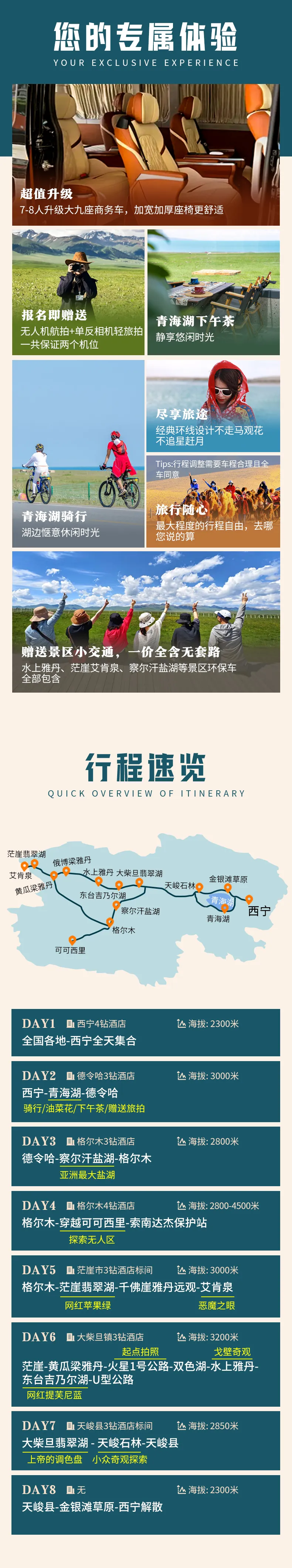 西寧---(170km,約2.5h)青海湖騎行/下午茶/小眾觀景點(diǎn)(300km,約4h)---德令哈