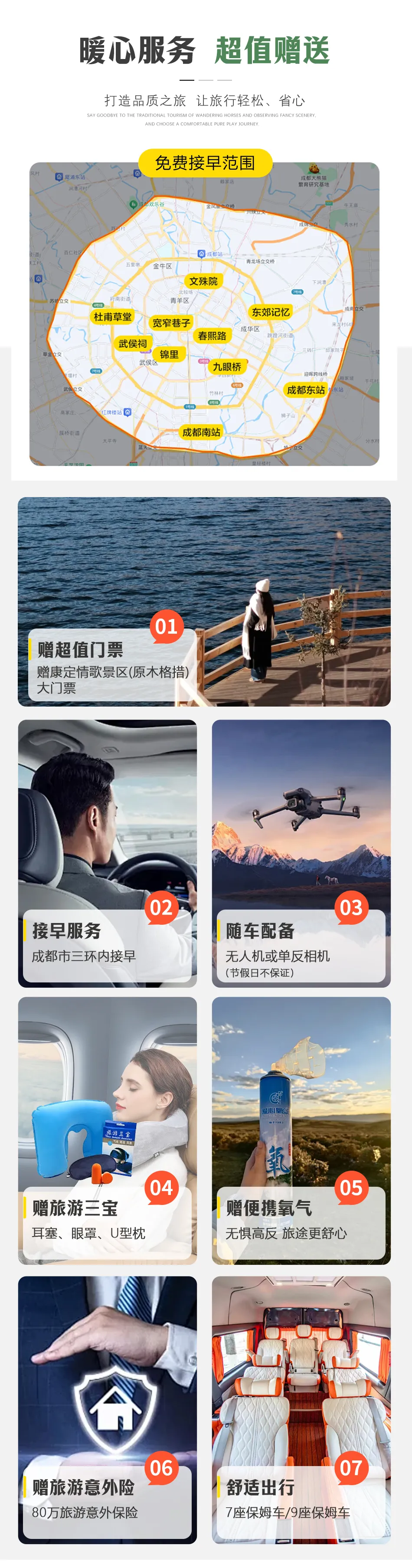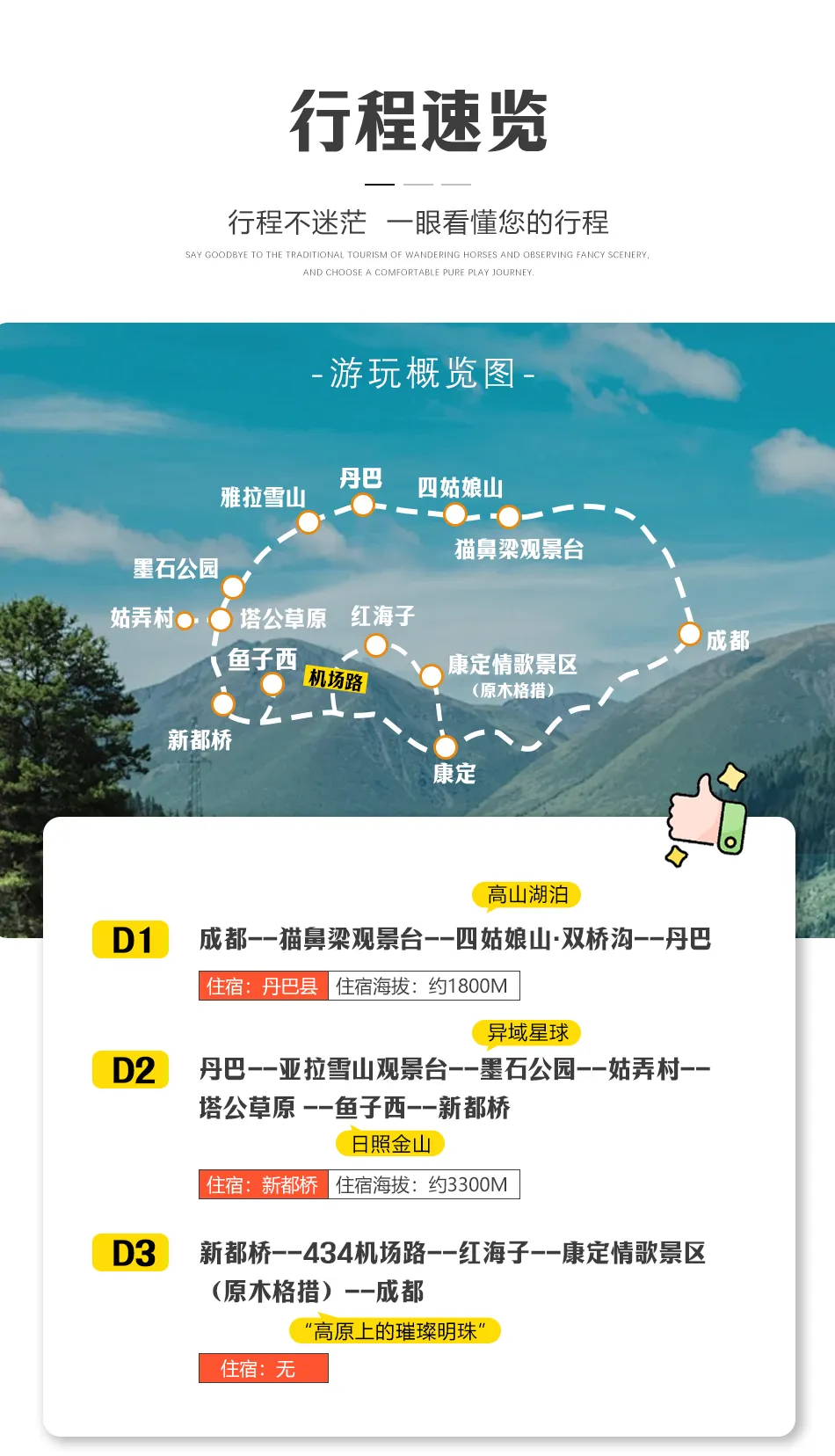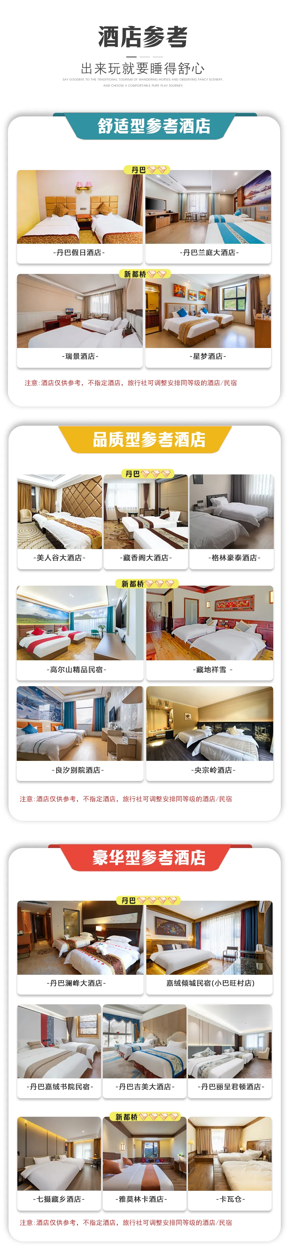 2、如魚子西無法前往,替換為八郎生都村、扎真、新都橋觀景臺等同類型觀景點,如產(chǎn)生相關(guān)景點中轉(zhuǎn)車、清潔費等費用,需自理;