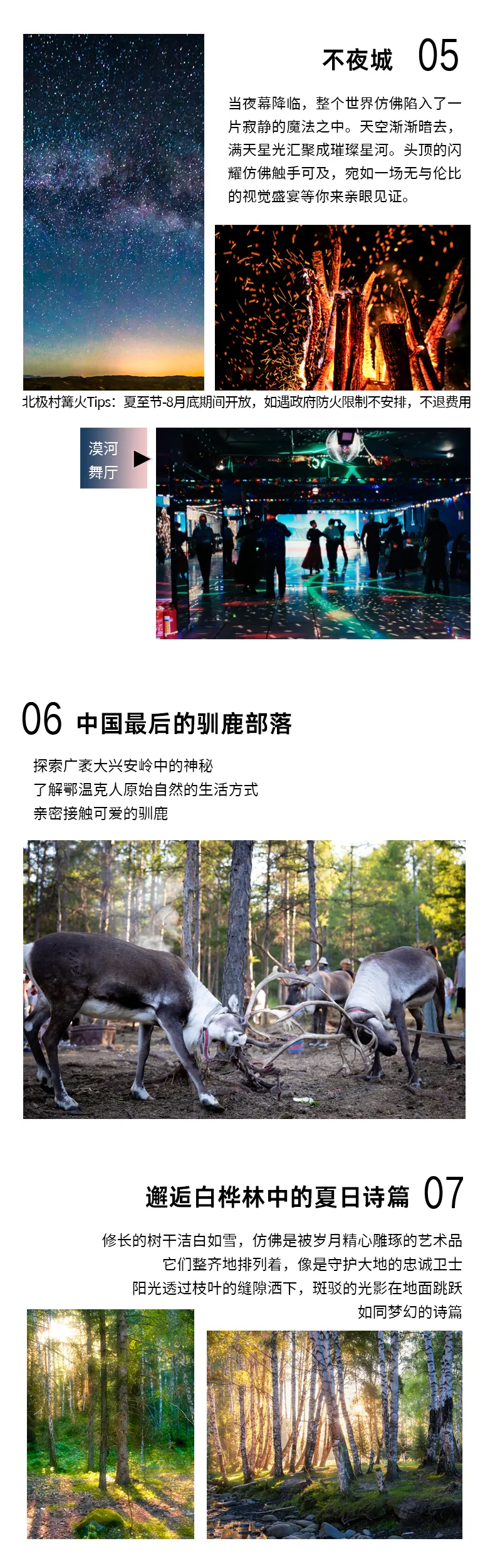 4、門票:龍江第一灣門票、北極村門票、鄂溫克馴鹿園、漠河舞廳門票;